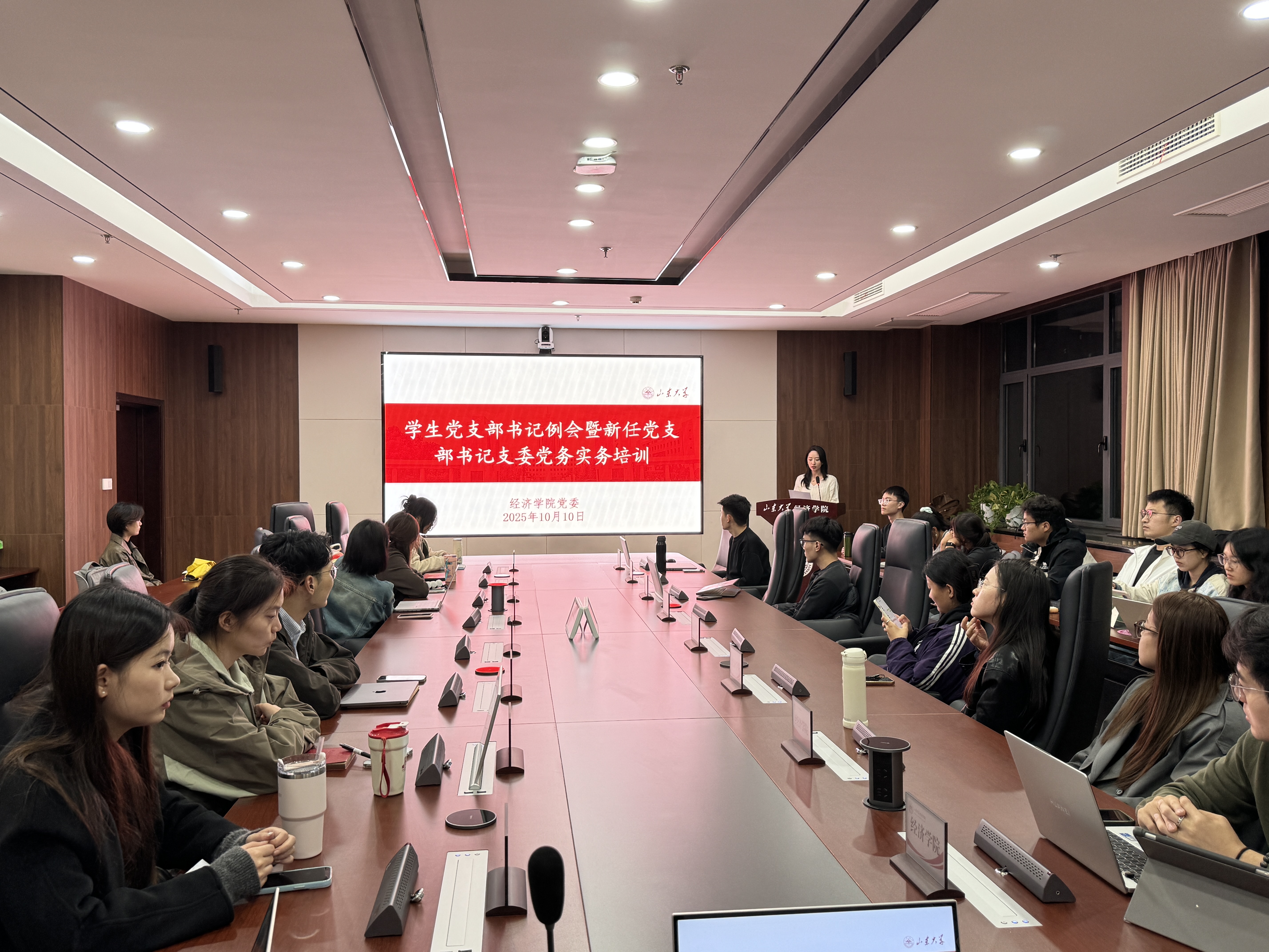 为进一步提升新任党支部书记及支委的业务能力,规范党员发展流程,并部署接下来的党务工作,10月10日晚,经济学院党委于知新楼B321召开学生党支部书记例会暨新任党支部书记支委党务实务培训。会议由组织员李莹莹主持,各党支部书记、支委以及预备党员代表参会。