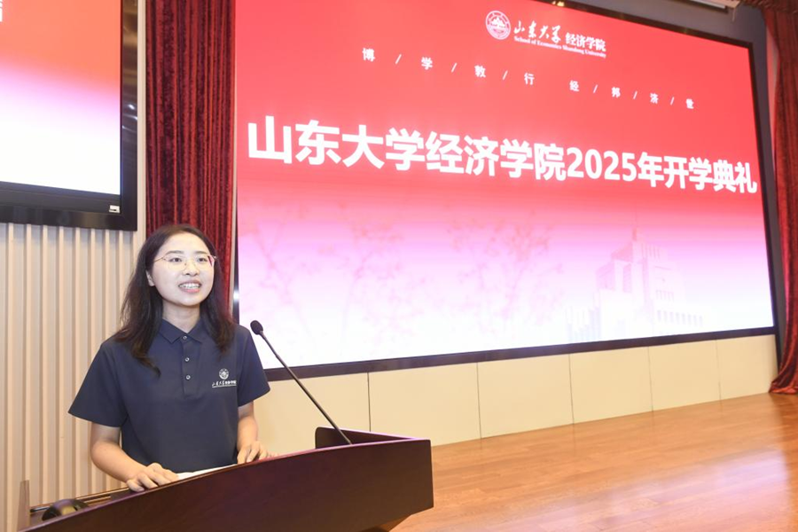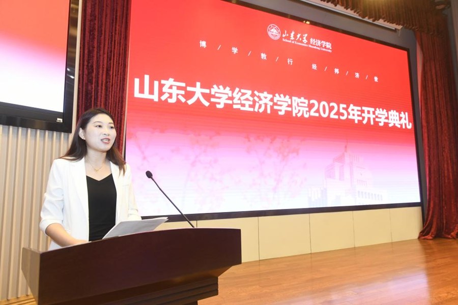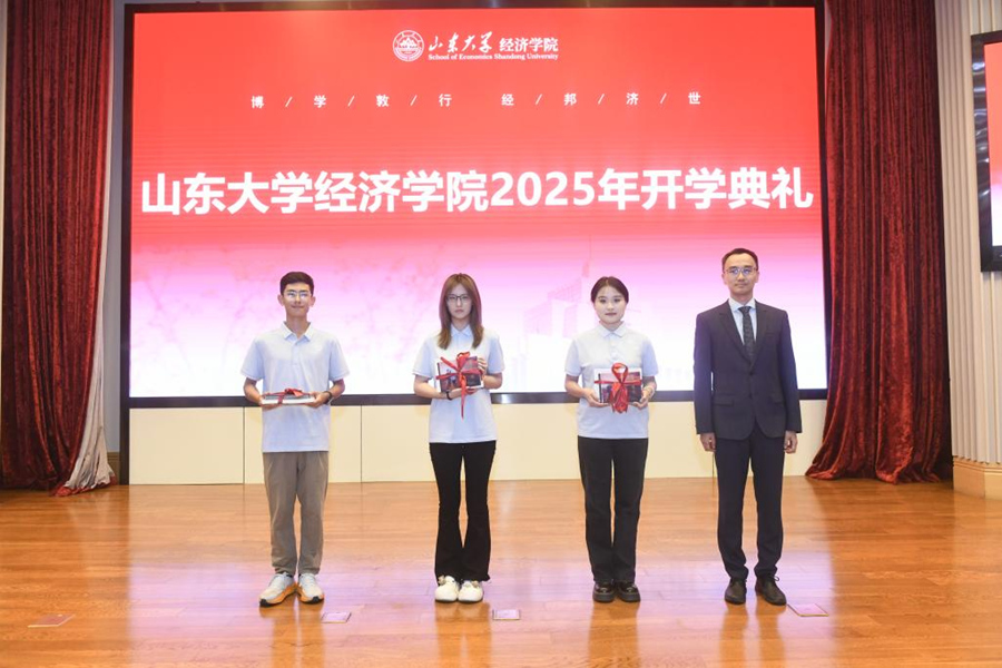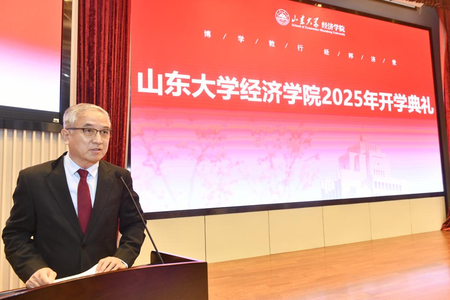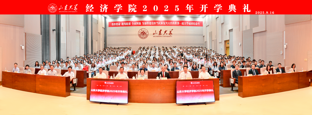 9月15日,山东大学经济学院2025级新生开学典礼暨书记第一课在中心校区知新楼A座三层报告厅举行,山东大学讲席教授、山东大学原校长樊丽明,泰山学者特聘专家臧旭恒,国家级教学名师于良春,国家级领军人才解垩,山东大学特聘教授李建标,山东大学杰出中青年学者曲创、周晓岚、张岚,山东大学讲席教授、经济学院院长林平,学院党委书记朱子川、正处级辅导员李维林参加典礼。典礼由泰山学者特聘专家、学院常务副院长石绍宾主持。