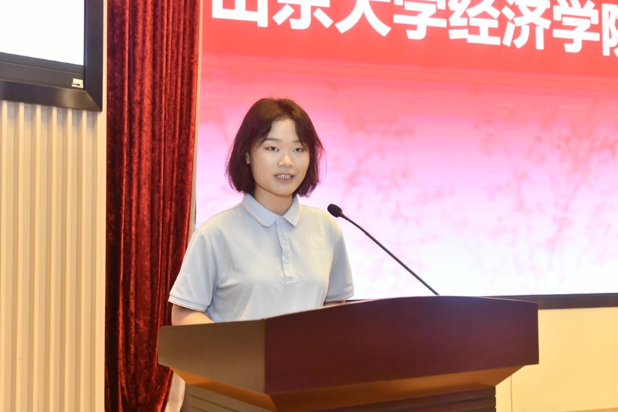 本科生新生代表祁乐融表达了身为经世学堂新生以及薛暮桥班成员的荣幸之感。山东大学“学无止境,气有浩然”的校训精神,以及薛暮桥等先贤的光辉事迹,为其前行提供了指引,她表示将传承务实精神,以知行合一践行使命,将小我与大我紧密相连。