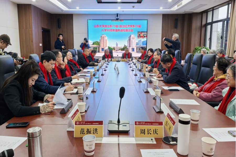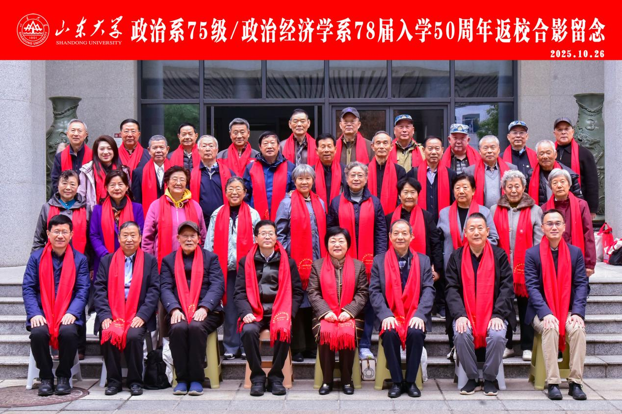 五秩春秋再聚首,青丝白发总关情。10月25日—26日,山东大学政治系75级/政治经济学系78届校友组织入学50周年返校活动,近30名师生重返母校,参观博物馆、校史馆、校友馆,前往洪家楼校区农场旧址故地重游,开展师生座谈交流,回望五十载风华岁月,再叙半世纪母校情长。山东大学原校长、国家治理研究院院长樊丽明,山东大学党委副书记陈宏伟,经济学院党委书记朱子川,经济学院原党委书记车贵,经济学院校友会副会长、正处级辅导员李维林,山东大学校友工作办公室副主任隋佳桐,老教师、教官代表参加活动,与78届校友追忆往昔、畅谈未来。