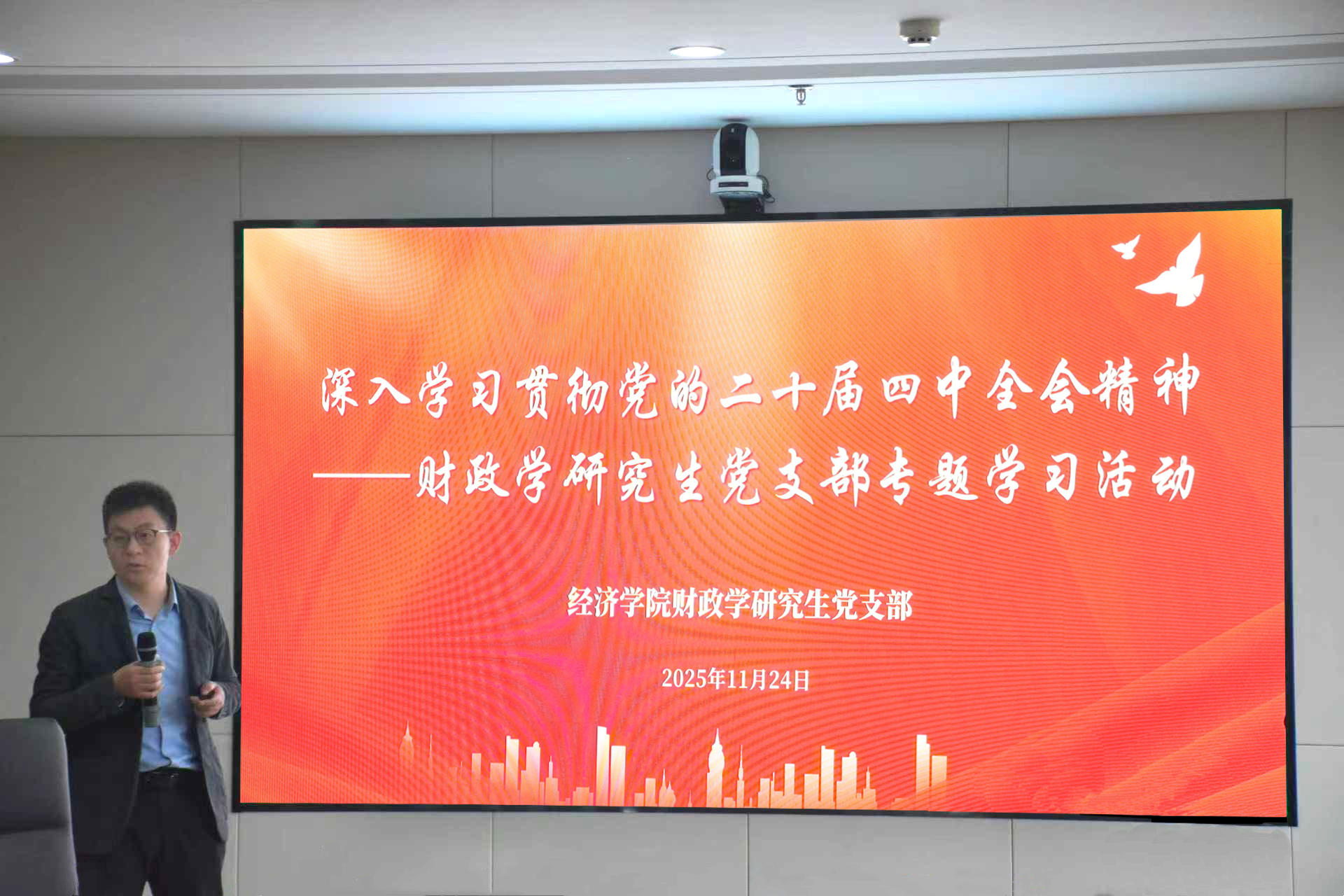 为深入学习贯彻党的二十届四中全会精神,充分发挥研究生党建“双百”“双十”示范引领作用,11月24日,经济学院财政学研究生党支部开展模拟政策听证会主题党日活动。此次活动以“领会全会精神,思辨强国之路”为主题,经济学院财政学研究生党支部全体党员、财政系教师党支部党员代表参加活动。