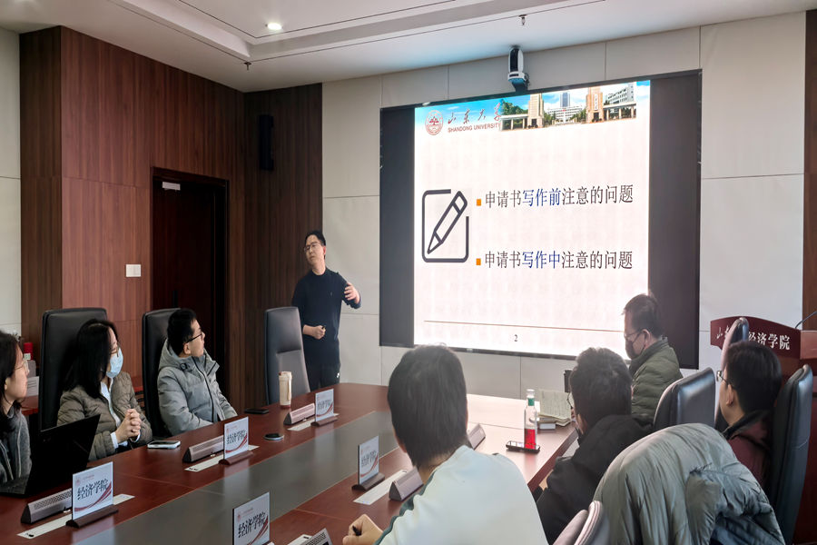 为切实做好2026年国家自然科学基金项目申报工作,有效提升项目申报质量与水平,12月4日,山东大学经济学院举办国家自然科学基金项目申报交流研讨会,学院教授张剑虎进行了申报介绍和经验分享,学院教师30余人参会,会议由学院副院长张伟主持。