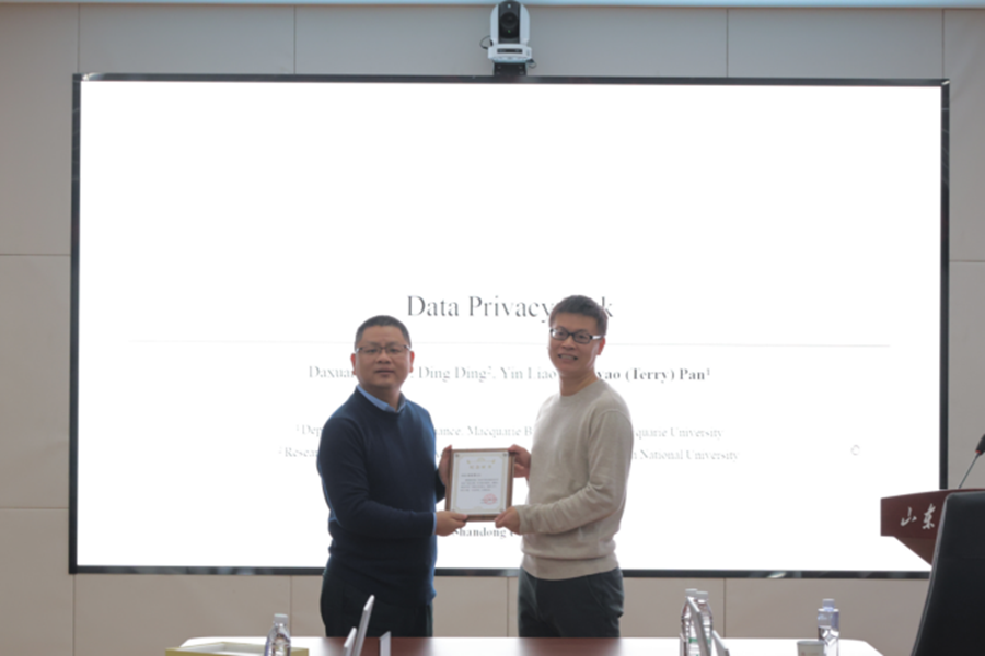 12月23日,经济学院第361期高级经济学讲座于中心校区知新楼B321举办,麦考瑞大学应用金融系教授潘哲耀受邀作题为“Data Privacy Risk”的学术报告。讲座由经济学院教授钱先航主持,学院部分师生参会。