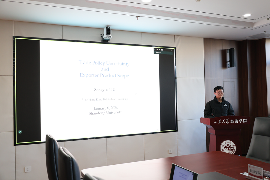 1月7日,经济学院第132期青联学术午餐会于中心校区知新楼B321举行,香港理工大学经济学博士生刘宗越受邀作题为“Trade Policy Uncertainty and Exporter Product Scope”的学术报告。讲座由经济学院副教授许琳主持,学院部分师生参会。