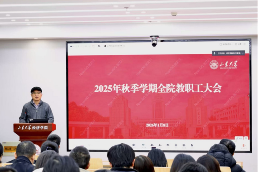 1月8日,经济学院召开2025年度中层领导班子和领导人员民主测评会、全体教职工大会,会议由经济学院党委书记朱子川主持。