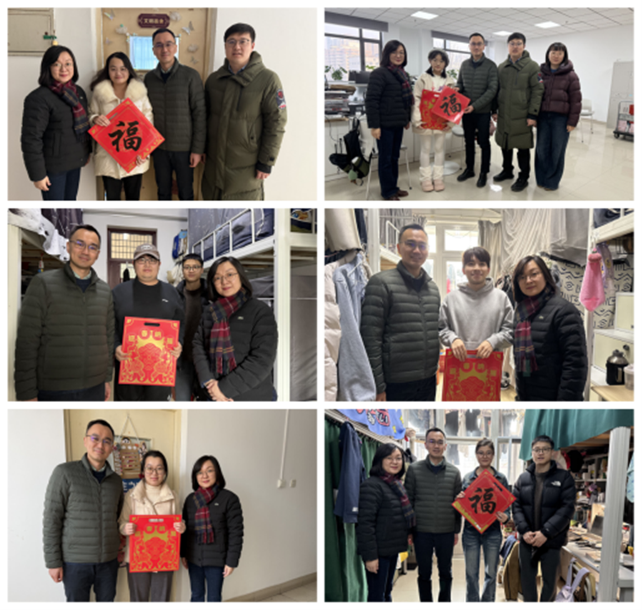 学院领导及辅导员一行走访慰问寒假留校学生期间,为同学们送上新春大礼包,带来学校、学院的深切关怀和美好祝愿,表示将全力为留校同学们做好服务保障工作,叮嘱同学们留校期间要遵守学校相关规定,合理安排假期,做到劳逸结合,度过一个欢乐充实、平安祥和的春节。同学们表示感谢学校、学院的关心关怀和暖心安排,将牢记嘱托,珍惜假期时间,合理规划、认真学习、加强锻炼,让寒假生活充实而有意义。