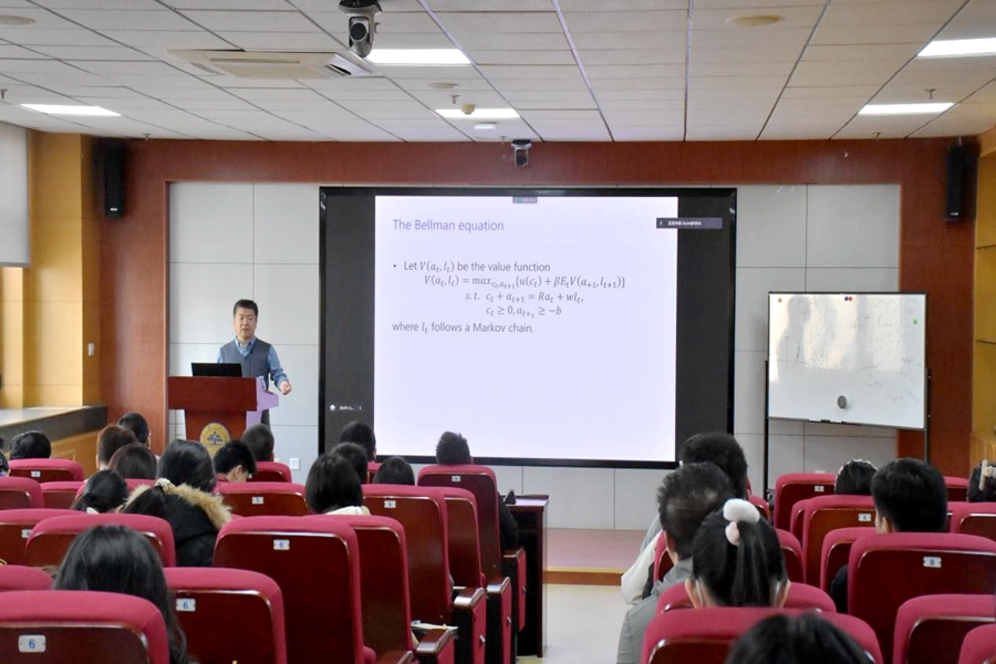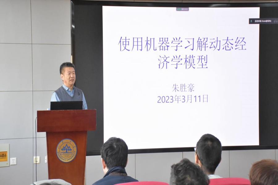 2023年3月11日,经济学院第二十五期研究生知新学术论坛在中心校区知新楼B423聚贤报告厅举行,对外经贸大学教授朱胜豪作了题为“使用机器学习解动态经济学模型”的报告。论坛由学院助理研究员张仁斌主持,部分师生参会。