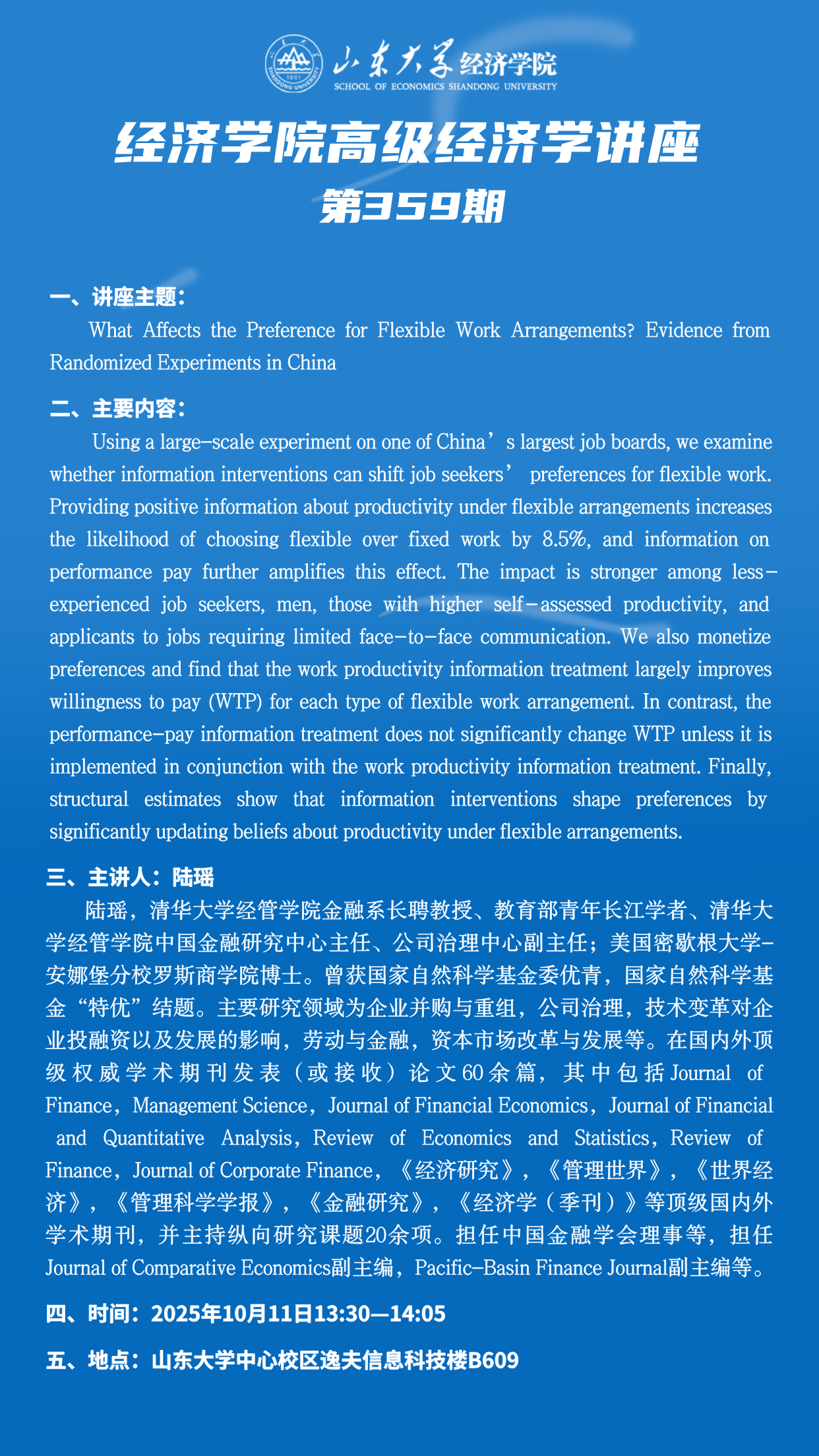 What Affects the Preference for Flexible Work Arrangements? Evidence from Randomized Experiments in China(经济学院高级经济学讲座第359期)
