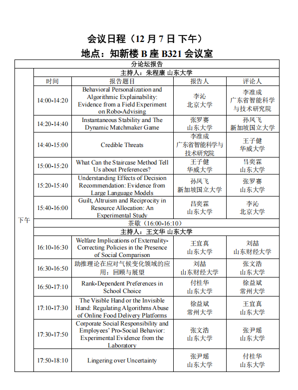 第七届类脑经济学研讨会暨全国博弈论与实验经济学研究会学术年会