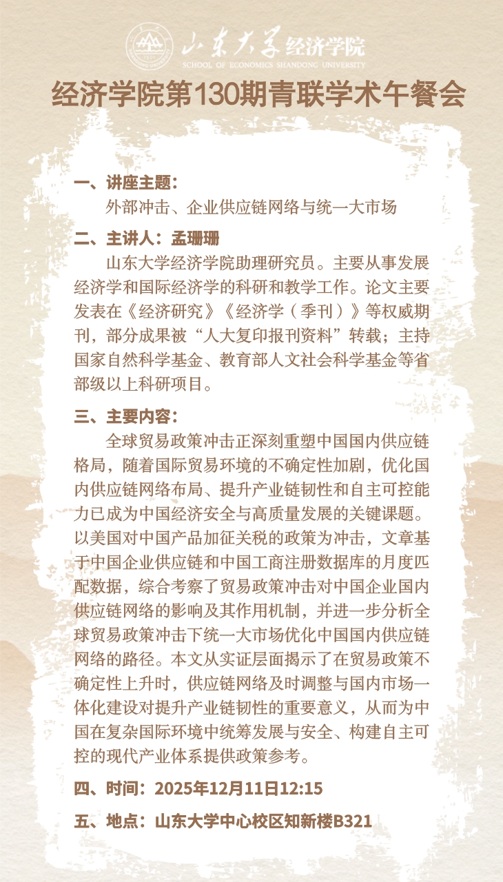 外部冲击、企业供应链网络与统一大市场(经济学院第130期青联学术午餐会)