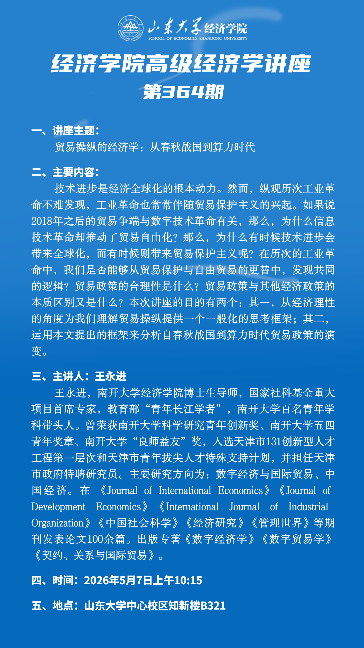 贸易操纵的经济学:从春秋战国到算力时代(经济学院高级经济学讲座第364期)