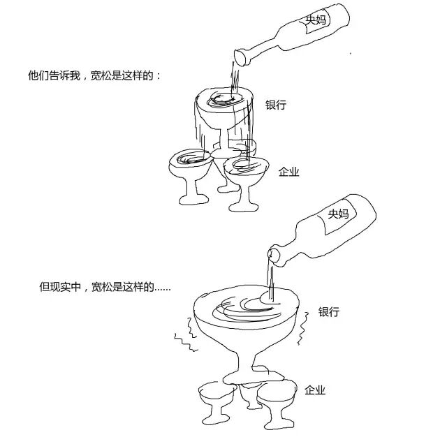 2政府干预放贷 政策性贷款还是存在。而在上述银行注资怪圈中,银行也有放贷冲动(赚了是自己的,亏了是国家的),导致D’曲线进一步右移,最优货币量从C点继续右移…… 正因为上述这些因素,我国的货币化率远高于其他国家。而畸高的货币化率带来种种恶果。恶果1 货币政策传导困难。银行成了政策传导途径,央妈的宽松作用于银行间市场,却因为银行目前不敢放贷,流动性淤积于银行间,传不到实体。