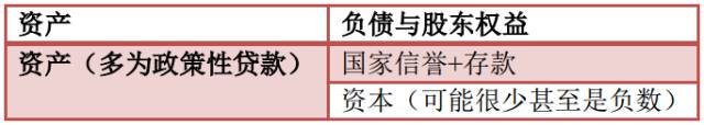 我们将这一迷局构建成一个模型:国有银行不需要资本金,存款人相信国家会担保他们的存款,所以存款就是资本金!所以我国银行的资产负债表是: