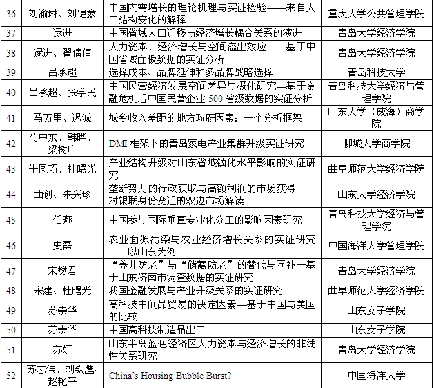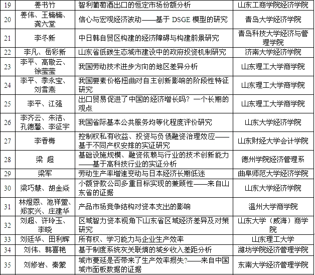 2014年第九届“山东经济学年会”入选论文名单及参会通知